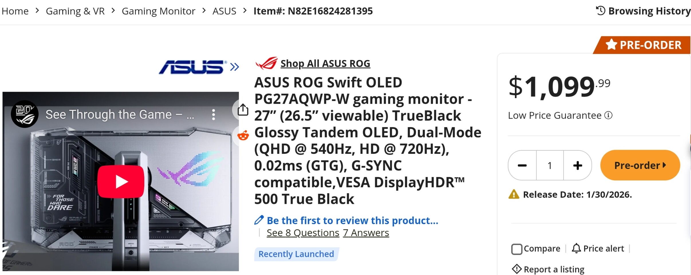 ASUS akhirnya membuka masa pre-order untuk monitor gaming terbarunya, ROG Swift PG27AQWP-W, di pasar Amerika Serikat. Monitor OLED berukuran 27 inci ini pertama kali diperkenalkan pada November 2025 dan kini sudah dapat dipesan dengan harga mulai USD 1.099,99. Penjualan ritel reguler dijadwalkan dimulai pada 30 Januari 2026.