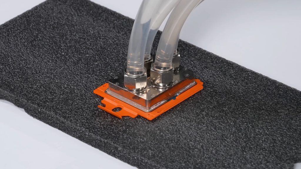 IHS Ryzen Threadripper Pro 9995WX sendiri memiliki ketebalan sekitar 4,1 mm. Dari ketebalan tersebut, Geekerwan hanya dapat memanfaatkan sekitar 2,0 mm untuk kedalaman sirip pendingin, sementara 2,1 mm sisanya diperlukan untuk menjaga kekuatan struktural IHS agar mampu menahan tekanan air. Proses pembuatan IHS kustom ini memakan waktu sekitar 19 jam CNC milling.