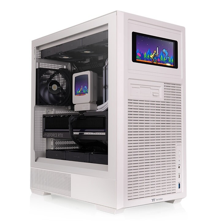 - Integrasi Layar LCD 6,0″ Opsional: Mendukung layar LCD depan untuk menampilkan info sistem atau animasi via software TT RGB PLUS 3.0. Melalui AI Forge, pengguna dapat langsung menghasilkan latar belakang dari perintah teks (text prompts) dan mempersonalisasi tampilan mereka.