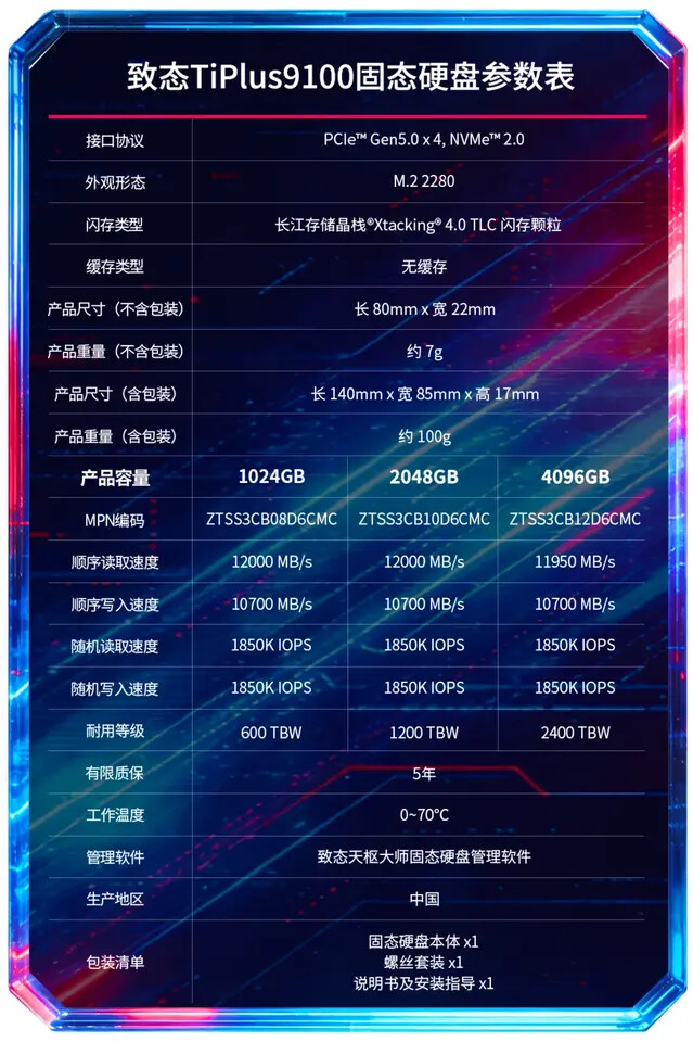 Zhitai Luncurkan Seri SSD TiPlus 9100 PCIe 5.0 M.2 NVMe