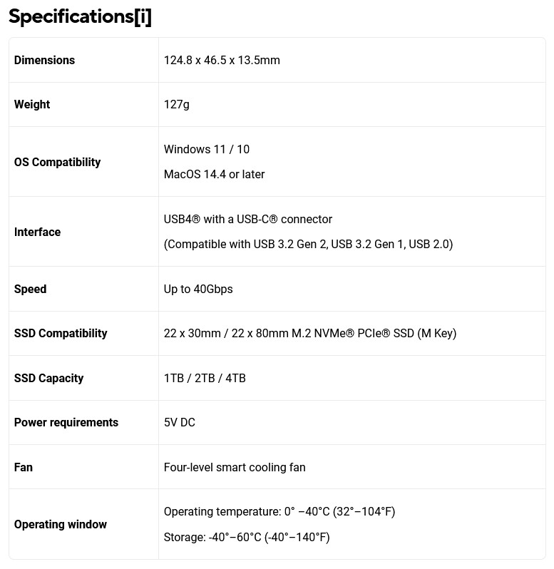 • Kipas Pintar 4 Tingkat: Enklosur ini menanamkan kipas pendingin pintar dengan empat tingkat kecepatan dan bantalan termal (thermal pad) bawaan. Sistem ini secara efisien mengelola panas selama sesi kerja yang menuntut.