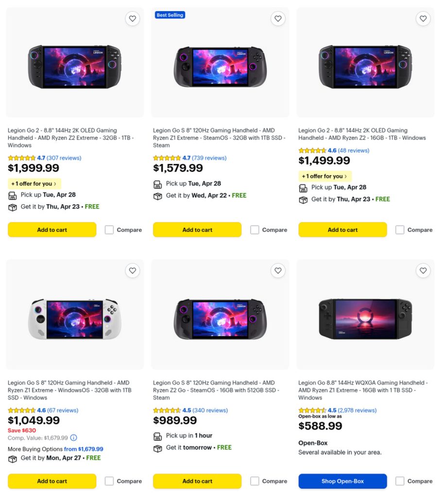 - Model Ryzen Z2 Go (RAM 16 GB, SSD 512 GB): Berdasarkan pantauan harga di pengecer Best Buy, model ini kini dihargai USD 989,99 (sekitar Rp15,8 jutaan). Lebih mengejutkan lagi, di toko daring resmi Lenovo AS, Legion Go S dengan Z2 Go dan SteamOS terdaftar di harga USD 1.049,99.