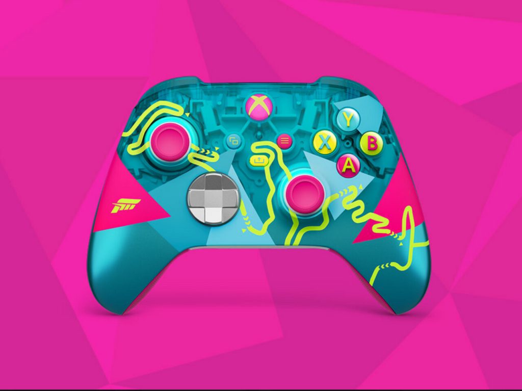 Baik kontroler maupun headset edisi Forza Horizon 6 ini menampilkan perpaduan aksen warna biru neon, merah muda, dan kuning yang sangat mencolok dan dinamis.