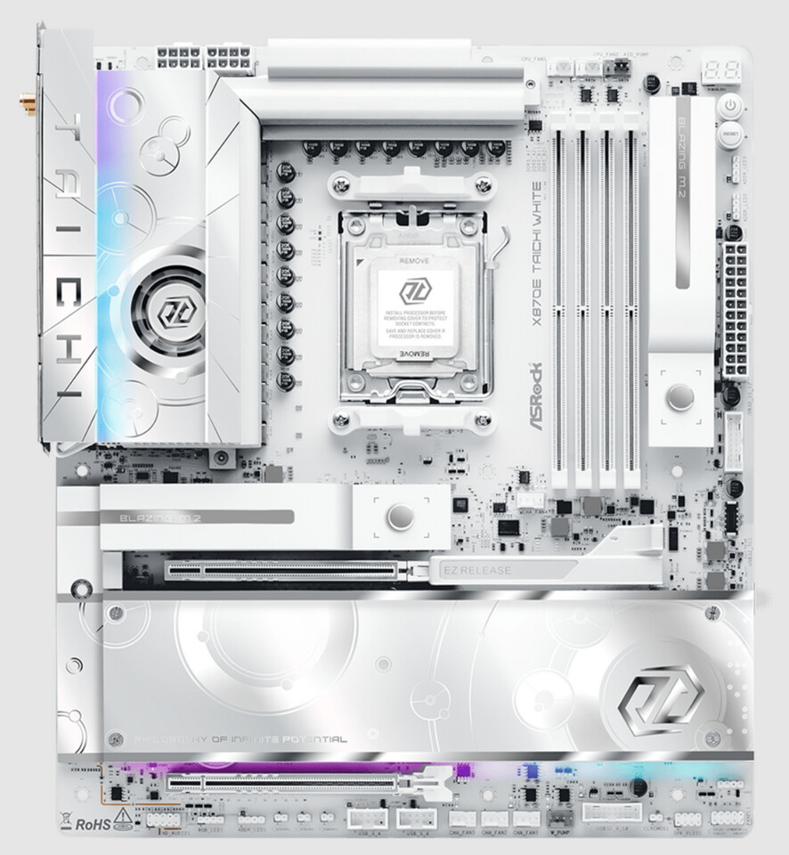 ASRock secara resmi mengumumkan peluncuran X870E Taichi White, motherboard serba putih murni pertama dalam jajaran produk flagship seri Taichi mereka. Menampilkan desain putih futuristik yang terinspirasi oleh era digital, X870E Taichi White memperkenalkan tampilan baru yang berani untuk keluarga Taichi.