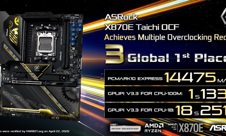 ASRock X870E Taichi OCF Cetak Berbagai Rekor Overclocking Bersama Prosesor AMD Ryzen 9 9950X3D2 Dual Edition